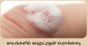 ஹைட்ரஜன் பெராக்சைடை ஊற்றும் போது H2O2 என்பது நீராகவும், ஆக்சிஜனாகவும் சிதைவடைகிறது.