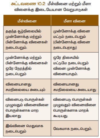 மாற இயலாது. எனவே இவ்வினை மீளாவினை எனப்படும். அட்டவணை 10.2-இல்