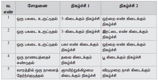 கீழ்க்கண்டவற்றுள் எவை ஒன்றையொன்று விலக்கும் நிகழ்ச்சிகள்