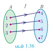எனவே, f -ன் வீச்சகம் B = {1, 3, 7}.