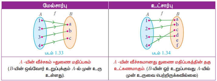 f : A → B ஆனது மேல் சார்பு எனில், f -யின் வீச்சகம் = B
