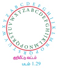 ஒரு வட்டத்தைப் படம் 1.29-ல் உள்ளபடி எடுத்துக்கொண்டால், வட்டத்தின் உட்பகுதியில் உள்ள ஒவ்வொரு ஆங்கில எழுத்திற்கும் மற்றொரு ஆங்கில எழுத்து அதன் வெளிப்புறத்தில் மாற்றி அமைக்கப்பட்டுள்ளதைக் காணலாம்.