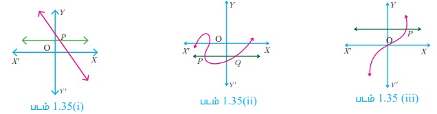 வரைபடம் (1.35 (ii))-ல் வரையப்பட்ட ஒரு கிடைமட்டக்கோடு P மற்றும் Q ஆகிய இரு புள்ளிகளில் வெட்டுவதால், கொடுக்கப்பட்ட வளைவரை ஒன்றுக்கு ஒன்றான சார்பைக் குறிக்காது.