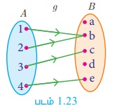 படம் 1.23 -ல் g ஆனது A-விலிருந்து B -க்கு ஒரு சார்பு. மேலும் g(1) = g(2) = b, ஆனால் 1 ≠ 2. எனவே, கணம் A-ல் 1 மற்றும் 2 ஆகிய இரண்டு வெவ்வேறு உறுப்புகளுக்குக் கணம் B -ல் 'b' என்ற ஒரே ஒரு நிழல் உருதான் உள்ளது. எனவே g ஆனது ஒன்றுக்கு ஒன்றான சார்பு அல்ல.
