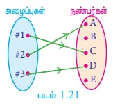 ஒரு கைபேசியில் மூன்று நபர்களின் பெயர்கள் பதிவில் உள்ளன எனக் கொள்க. பதிவில் உள்ள மூவருக்கும் அழைப்புகள் செல்கின்றன எனில், அந்த அழைப்புகளை குறிக்கும் சார்பு மேல் சார்பு (படம் 1.25) ஆகும்.