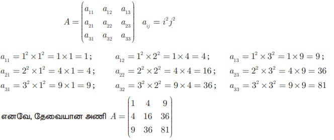 a ij = i2 j2 என்ற அமைப்பைக் கொண்ட 3 × 3 வரிசையுடைய அணியைக் காண்க.