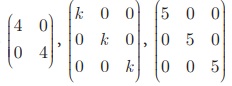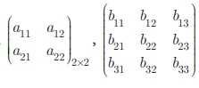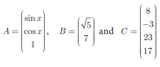 என்பன 3 × 1, 2 × 1 மற்றும் 4 × 1 வரிசையுடைய நிரல் அணிகள் ஆகும்.