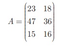 கொடுக்கப்பட்ட தகவல்களைக் கொண்டு 3 × 2 என்ற வரிசை கொண்ட அணியை பின்வருமாறு எழுதலாம்.