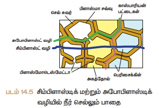 10வது அறிவியல் : அலகு 14 : தாவரங்களின் கடத்துதல் மற்றும் விலங்குகளின் சுற்றோட்டம் : வேர் செல்களில் நீர் செல்லும் வழிமுறைகள் - : 10 ஆம் வகுப்பு