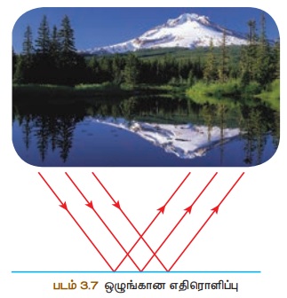 எனப்படும். எ.கா: சமதள ஆடியில் உருவாகும் எதிரொளிப்பு மற்றும் நிலையான தண்ணீரில் ஏற்படும்