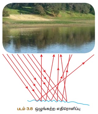 படும்போது ஒவ்வொரு ஒளிக்கதிரும் வெவ்வேறு கோணத்தில் எதிரொளிக்கின்றன. இங்கு ஒவ்வொரு
