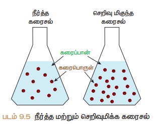 எதில் குறைந்த அளவு கரைபொருள் உள்ளதோ அதனை நீர்த்த கரைசல் என்றும்