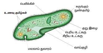 பாரமீசியம் என்பதும் நீரில் வாழும் ஒரு செல் உயிரினம் ஆகும்.