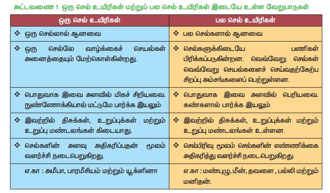 ஒரு செல் மற்றும் பல செல் உயிரினங்கள்