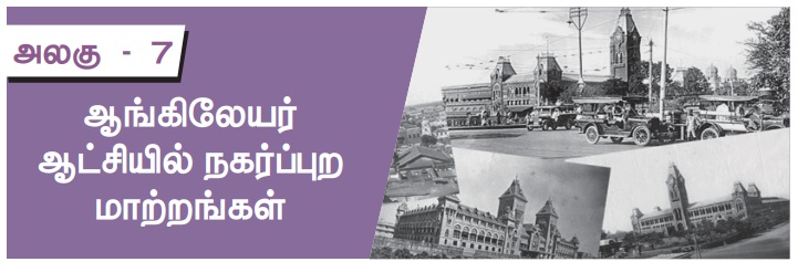 அலகு 7 | வரலாறு | எட்டாம் வகுப்பு சமூக அறிவியல் - ஆங்கிலேயர் ஆட்சியில் நகர்ப்புற – மாற்றங்கள் | 8th Social Science : History : Chapter 7 : Urban changes during the British period