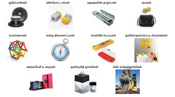 பயன்படுத்துகிறோம். கீழ்க்காணும் பொருள்களில் காந்தங்கள் எவ்விதம் பயன்படுகின்றன என