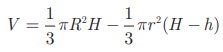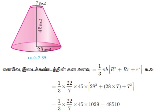 இங்கு, h = 45 செ.மீ, R = 28 செ.மீ, r = 7 செ.மீ