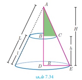H மற்றும் h என்பன முறையே கூம்பு மற்றும் இடைக்கண்டத்தின் உயரம் என்க. இவற்றின் சாயுயரம் முறையே, L மற்றும் l என்க.