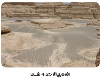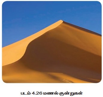 காற்றின் செயல்கள், காற்றின் அரித்தல் நிலத்தோற்றங்கள், காற்று படியவைத்தலினால் தோன்றும் நிலத்தோற்றங்கள் - காற்று | 11th Geography : Chapter 4 : Lithosphere: Exogenic Processes