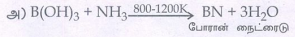 அ) B(OH)3 + NH3 800-1200K, BN + 3H,O போரான் நைட்ரைடு